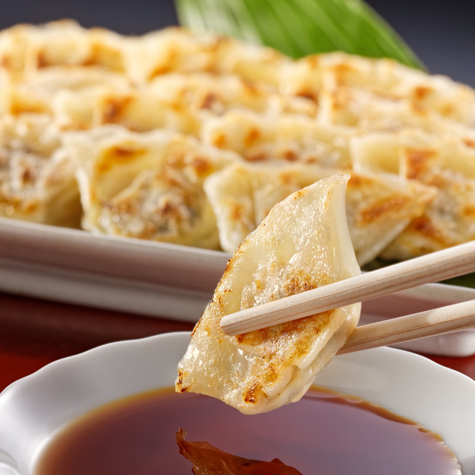 豚肉には柔らかくて旨味成分がたっぷり詰まった『鹿児島県産黒豚』を100%使用し、その旨味を存分に味わっていただけるように黒豚を粗挽きに仕上げてたっぷりと詰め込みました。新鮮なキャベツや玉葱、高知県産生ニラなど、全て国産野菜を使用して作り上げたジューシーで黒豚の旨みが溢れる一口餃子です。また、餃子の皮には『餃子皮専用粉』を使用しており、焼面はパリッと焼けて、その他の部分はモチモチでプリプリの食感があり、小麦粉本来の味が楽しめます。
